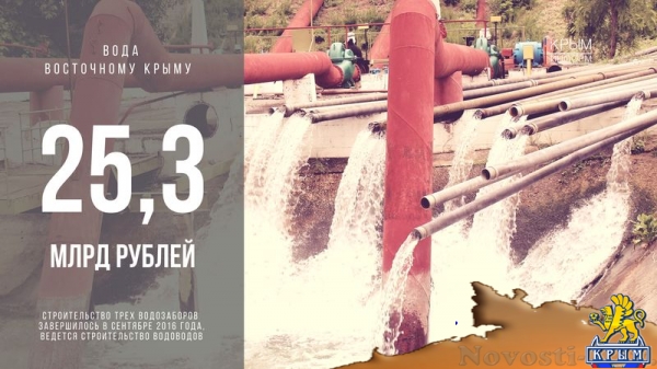 Строительство водоводов в Восточный Крым началось в конце 2016 года. Заказчиком выступает Служба капитального строительства Крыма. Реализация проекта позволит существенно облегчить ситуацию с водоснабжением в Восточном Крыму, вызванную перекрытием Украиной Северо-Крымского канала.