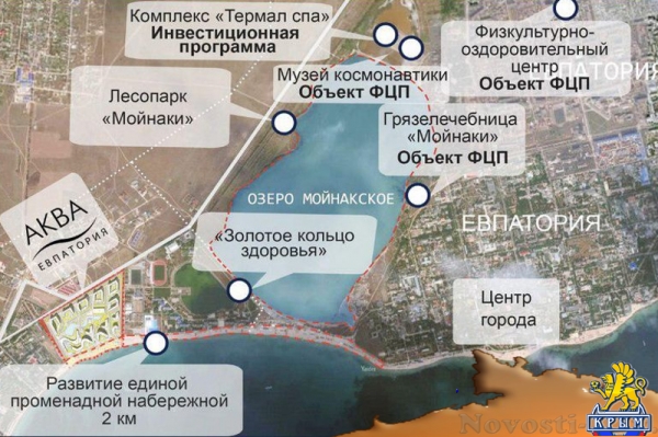 «Проект строительства рекреационно-развлекательного комплекса «Аква Евпатория» был презентован на Ялтинском инвестиционном форуме. Он был согласован и одобрен на всех властных уровнях. В результате его реализации Заозерка получит современную благоустроенную набережную, новую парковую зону и комплекс жилой застройки», – написал он.