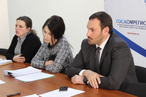 19.03.2018 Руководство Государственном комитете по государственной регистрации и кадастру Республики Крым и начальники территориальных отделов обсудили организационные аспекты в работе регистрирующего органа. В комитете прошло совещание под председательством главы Госкомрегистра Александра Спиридонова. На мероприятии рассмотрели вопрос упорядочивания архивов, ранее принадлежащих территориальным органам Госземагентства Украины в РК. Также обсудили ряд моментов, связанных с прохождением сотрудниками комитета экзамена на звание государственного регистратора, контролем за сроками осуществления учетно-регистрационных действий, а также взаимодействием структурных подразделений с ГБУ РК «МФЦ». «Сегодня поставлена задача территориальным подразделениям, отстающим в вопросе инвентаризации архивных документов, ускорить работу в этом направлении. Будем развивать и положительный опыт проведения консультаций граждан на базе МФЦ, что удобно заявителям. Кроме того будет усилен контроль за проведением регистрационных действий», - рассказал Александр Спиридонов.