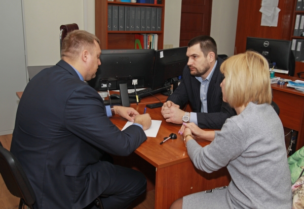 Специалисты ведомства проконсультировали руководство ГУП РК «Крымхлеб» по проблемным вопросам, возникшим у предприятия при проведении геодезических работ. Начальник отдела учета объектов капитального строительства № 1 Госкомрегистра Оксана Игнатович разъяснила заявителям особенности постановки недвижимости на кадастровый учет. Администрацию ГУП интересовали варианты решения ситуации с пересечением границ земельного участка предприятия, расположенного в г. Джанкой. По данному вопросу заявителей проконсультировал начальник отдела учета земельных участков № 2 Павел Кошеренко.