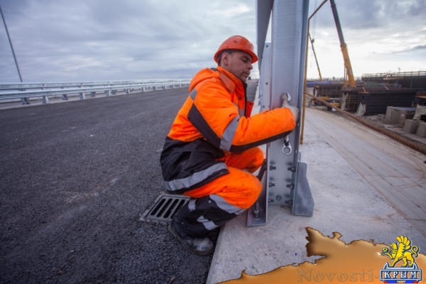 На участке моста через Керченский пролив, который находится на острове Тузла, выполнили обустройство проезжей части. Дорожники установили барьерное ограждение и мачты освещения на протяжении 450 метров будущей автодороги. До декабря строителям предстоит завершить укладку двух слоев асфальта и выполнить обустройство всей проезжей части, сообщили в инфоцентре «Крымский мост». Работы по обустройству выполнены на участке транспортного перехода между пятью опорами. По обеим сторонам моста установлено в общей сложности 1 800 погонных метров барьерного ограждения и 28 мачт. Всего предстоит установить более 76 километров барьерного ограждения и более 1000 мачт освещения. Барьерное ограждение – металлическое, двухъярусное. C внешней стороны мостового полотна его высота 1,5 метра, уровень удерживающей способности – 500 кДж. На разделительной полосе высота барьерного ограждения – 1,1 метра, здесь оно способно выдержать удар в 350 кДж. Мачты освещения – это металлические силовые опоры высотой 9 метров с однорожковыми кронштейнами со светильниками. Они устанавливаются на консолях пролетов моста с внешней стороны. По берегам пролива, на участках подъезда к мостовому сооружению, предусмотрены мачты с двухрожковыми кронштейнами. Они устанавливаются на разделительной полосе. Светильники полностью защищены от воздействия морского климата. Мост будет освещаться натриевыми лампами высокого давления с электромагнитным пускорегулирующим аппаратом. Одновременно с обустройством автодороги участники реализации проекта приступили к разработке схемы организации дорожного движения на мосту. Расчетная скорость движения на автодорогах категории 1б – 120 километров в час, а фактическая максимальная скорость, согласно правилам дорожного движения, составит 90 километров в час. Еще одна задача, которую необходимо выполнить строителям перед началом движения по Крымскому мосту, – создание Автоматизированной системы управления дорожным движением (АСУДД), предназначенной для централизованного управления транспортными потоками.