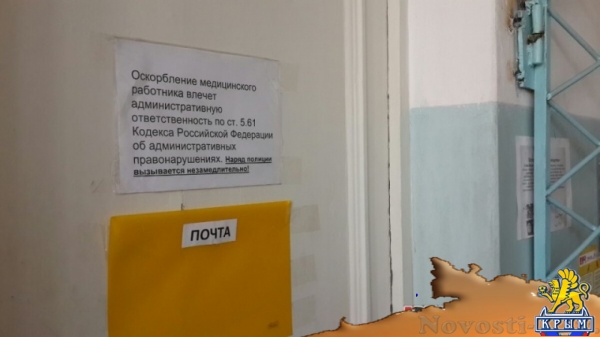 Практически над каждой дверью Керченской городской больницы №2 размещено грозное предупреждение, что «Оскорбление медицинского работника влечет административную ответственность по статье 5.61 Кодекса об административных правонарушениях». Вдобавок, потенциальных сквернословов сдерживают угрозой немедленного вызова полиции.