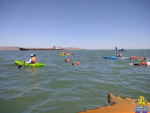 Со стороны косы Чушка стартовал заплыв через Керченский пролив, в котором принимают участие тридцать человек.