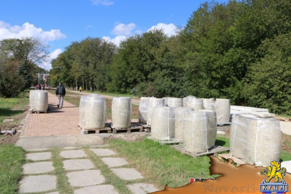 Если в жилых дворах процесс только начинается, то в парке дым стоит столбом. Подрядчики, которые первоначально заявляли, что завершат работы по благоустройству первой очереди парка до конца сентября, действительно очень спешат. Работа по замене тротуара завершается, в парк уже доставлены новые столбы освещения, лавочки и вазы для цветов.