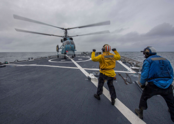 Морская авиация ВМС Сил Вооруженных Сил Украины провела в Черном море совместные тренировки типа PASSEX с ракетным эсминцем USS Carney (DDG 64) ВМС США. Фото: Пресс-центр Командования ВМСУ Морская авиация ВМС Сил Вооруженных Сил Украины провела в Черном море совместные тренировки типа PASSEX с ракетным эсминцем USS Carney (DDG 64) ВМС США. Об этом сообщает Центр журналистских расследований со ссылкой на информацию пресс-центра Командования ВМСУ. «Целью мероприятия была отработка взаимодействия в соответствии со стандартами НАТО и повышение уровня совместимости», — говорится в сообщении. В ходе тренировок вертолеты украинских ВМС Ка-27ПЧ и Ка-27пр в сложных метеоусловиях осуществили более десяти посадок на борт американского корабля, провели разведку и наблюдение за надводной обстановкой. «Отработка подобных совместных элементов — это уже привычное для нас дело. Но, безусловно, каждая такая возможность становится хорошей возможностью для получения дополнительных знаний и совершенствование навыков взаимодействия с нашими иностранными коллегами по современным стандартам», — отметил временно исполняющий обязанности заместителя командующего ВМСУ по боевой подготовке Андрей Куриленко. В пресс-центр отметили, что эсминец USS Carney (DDG 64) ВМС США с 8 по 11 января находился с дружественным визитом в порту Одессы. Эсминец USS Carney (DDG 64) ВМС США в порту Одессы Фото: port.odessa.ua Как сообщалось, 2 декабря 2017 года ВМСУ провели в Черном море совместную тренировку типа PASSEX с ракетным эсминцем ВМС США USS James E. Williams. Фото: Пресс-центр Командования ВМСУ