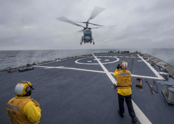 В ходе тренировок вертолеты украинских ВМС Ка-27ПЧ и Ка-27пр в сложных метеоусловиях осуществили более десяти посадок на борт американского корабля, провели разведку и наблюдение за надводной обстановкой.