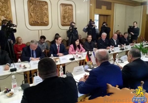 В Государственном Совете РК состоялась встреча крымских политиков с делегацией земельных депутатов из Германии. Гостей встречал замредседателя Госсовета РК Ефим Фикс, который обращаясь к членам делегации, напомнил, что встреча проходит в 73-ю годовщину Ялтинской конференции. «Тогда лидеры союзных стран приняли важные решения для всего мира. Это и создание ООН, и создание условий по недопустимости возрождения фашизма. Стоит отметить, что именно возрождение фашизма на Украине — одна из причин, по которым Крым вернулся в состав России. На Украине были приняты такие решения, как признание героем одного из организаторов массовых убийств поляков и евреев Романа Шухевича. В стране, где возродилась бандеровщина, мы не могли жить и просто с этим смириться, потому, в том числе, и решили провести референдум», — сказал Фикс. Фикс рассказал немецким политикам, что после распада СССР крымчане просили украинское правительство о создании возможностей для социального и экономического развития, но официальный Киев отказывался идти навстречу: «В 2013-2014 году произошёл Майдан, и мы решили провести референдум. Мы поставили 2 вопроса: крымчане, хотите вы быть в составе Украины или в составе России? Жители полуострова подавляющим большинством проголосовали за то, чтобы быть с Россией. Нас сегодня обвиняют во всех грехах, но пусть ответят на вопрос: почему после 20 с лишним лет пребывания Крыма в составе независимой Украины только ничтожный процент крымчан захотел остаться в стране. Когда ответят — всё встанет на свои места». Зампредседателя Госсовета РК также сказал, что сегодня крымчане живут полноценной жизнью в составе Российской Федерации: «Реализуются масштабные программы, строится Крымский мост. При Украине было введено в эксплуатацию только 273 места в детских садах. За 4 года пребывания Крыма в составе России введено 15 тысяч мест в детских садах. Крымчане счастливы, что они с Россией». В свою очередь депутат парламента земли Северный Рейн-Вестфалия, член партии «Альтернатива для Германии» Роджер Беккамп отметил, что в Крыму члены делегации увидели благоприятную для жителей полуострова ситуацию. «Мы приложим усилия для снятия санкций. Сегодня 5 лет как была образована наша партия, и мы отмечаем эту дату в Крыму. Нас особенно впечатлили, кроме замечательного приёма крымчанами, что вы сами определили своё будущее», — сказал Беккамп. Другой член делегации немецких политиков, депутат парламента земли Северный Рейн-Вестфалия Хельмут Сайффен поблагодарил крымчан за приём: «Спасибо вам за тёплый приём. В Германии, несмотря на то, что мы молодая партия, нас поддерживают 15% немцев. Мы не можем вмешиваться в отношения России и Украины, но надеемся, что вражде будет положен конец. Также надеемся, что в будущем все народы будут жить в мире». Заместитель Председателя Совета министров Республики Крым — Постоянный Представитель РК при Президенте Российской Федерации Георгий Мурадов заявил, что воссоединение Крыма и России можно сравнивать с объединением Германии: «Крым многонациональный, но он всегда был сердцем Русского мира. Именно из Крыма берёт начало русская культура. Мы думали, что немецкие политики поймут нас лучше других, но весь народ Крыма был возмущён, когда в Германии не пожелали признать законность референдума. Передайте Меркель, что мы