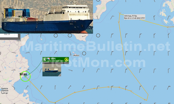 По данным представителя тунисской таможни Хашема Заннеда, судно Ural направлялось в Камерун и зашло в порт Сфакса из-за поломки еще 15 февраля. Контролирующие службы нашли на борту 24 незарегистрированных контейнера.