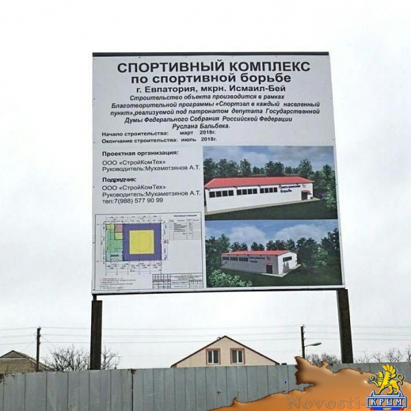 "Благотворительная программа "Спортзал в каждый населенный пункт" дошла и до города Евпатория, до микрорайона Исмаил-Бей - там начались работы по возведению нового спортзала. Мы ждем от жителей Исмаил-Бея чемпионов по боксу и всем видам борьбы. Администрация города оперативно выделила земельный участок в максимальной близи к жителям, поэтому заниматься спортом будет удобно и комфортно. Верю, что зал станет трамплином развития спортсменов и точкой притяжения молодежи", - сообщил Бальбек.