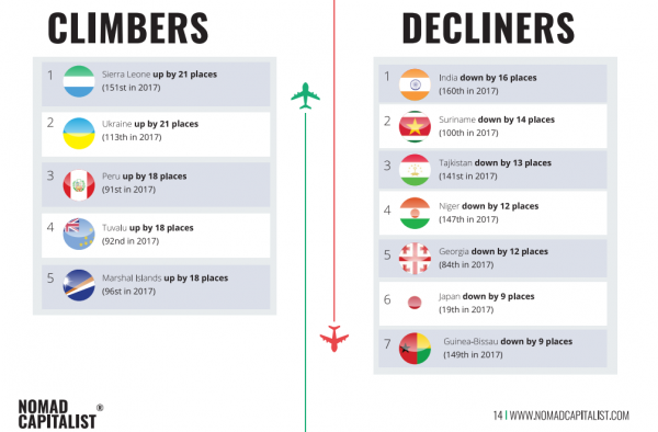 В первую пятерку нынешнего рейтинга вошли гражданства Люксембурга, Ирландии, Швейцарии, Португалии и Швеции.