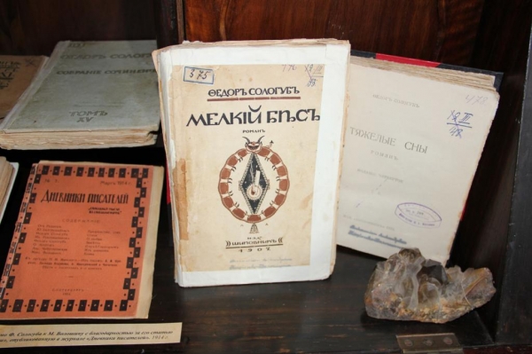 - К сожалению, только часть из них может быть представлена на выставке по причине малой экспозиционной площади. Тем не менее экспонируемые предметы дают достаточно исчерпывающее представление о творчестве этого самобытного, ни на кого не похожего писателя, - рассказала «Кафе» заведующая научно-экспозиционным отделом музея Татьяна Свидова. - Это статья М.А. Волошина в газете «Русь» (1907 год), портрет Федора Сологуба в восьмой книге стихов«Пламенный круг»с инскриптом: «Максимилиану Александровичу на добрую память Федор Сологуб», пьеса «Победа смерти», впервые представленная 6 ноября 1907 года в Драматическом театре В.Ф. Комиссаржевской и другие мемориальные предметы.