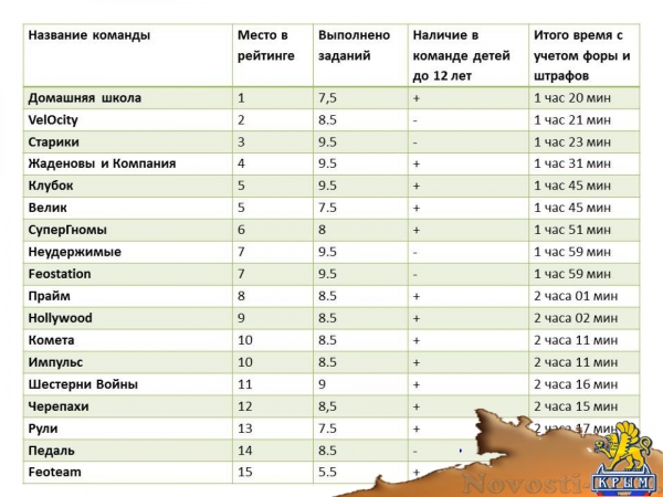 19 команд (из них добрая половина – семейные) и в общей сложности 83 человека (из них более 20 детей до 12 лет) собрались у фонтана Айвазовского 1 апреля, чтобы испытать на себе новый формат здорового отдыха. Однако, в этот раз пришлось не только крутить педали, но и активно поработать головой, благодаря заданиям самого квеста, объединившего интересные факты прошлого и настоящего Феодосии. Найти улицу Карла Либхнета, сосчитать кресты в месте захоронения Айвазовского, вспомнить, где располагался институт Физических методов лечения, понять, что голубец из задания не любимое многими блюдо, а судно «Иван Голубец», стоящее в порту… Вот малая доля того, над чем пришлось «поломать» голову командам-участникам. Активно и с пользой провел время каждый пришедший на велоквест, а вот с заданиями справились не все.
