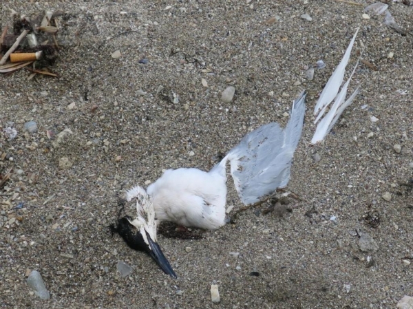 Совершая очередную прогулку по залитой солнцем набережной, корреспонденты «Кафы» никак не ожидали, что станут свидетелями настоящей драмы. На пляже возле КНС №3 лежат бездыханные тушки чаек и лысух. Их количество не настолько велико, чтобы начинать бить тревогу о начавшейся внезапно гибели птиц, поэтому наличие в непосредственной близости вальяжно прогуливающегося четверолапого хищника, дает основания предполагать, что виновником трагедии является именно он. Тем более что жертвы, на первый взгляд, имеют все признаки насильственной смерти.