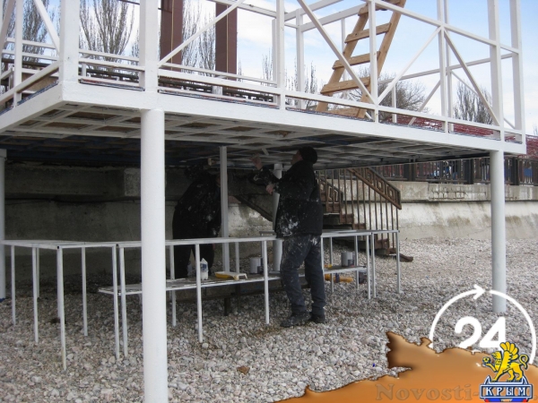 «Город 24» предлагает прогуляться по набережной и оценить, что ещё необходимо сделать к пляжному сезону, а что уже сделано. Активно ведутся работы в летних барах: сварка, покраска, восстановление плитки. Газоны приведены в порядок. Пляжную полосу пока не ровняли.