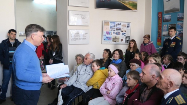 Затем пришедшим, коих собрался полный зал музея, летчики Центра «Морской» рассказали, как же все-таки сегодня стать космонавтом. Эта информация в основном была предназначена для юных гостей встречи, а они составляли добрую половину всей собравшейся публики. Но и взрослым зрителям скучать также не приходилось, так как вся программа была насыщена любопытными и полезными данными. Феодосийский поэт Эдуард Абрамов поведал о своих точках соприкосновения с космосом и его покорителями.На этой встрече звучало также много слов о летчиках, штурманах, инженерах-испытателях, конструкторах и научных работниках.Говорили о наиболее ярких событиях в период создания авиационной и космической техники, ее творцах и космонавтах, живших и работавших в нашем городе.