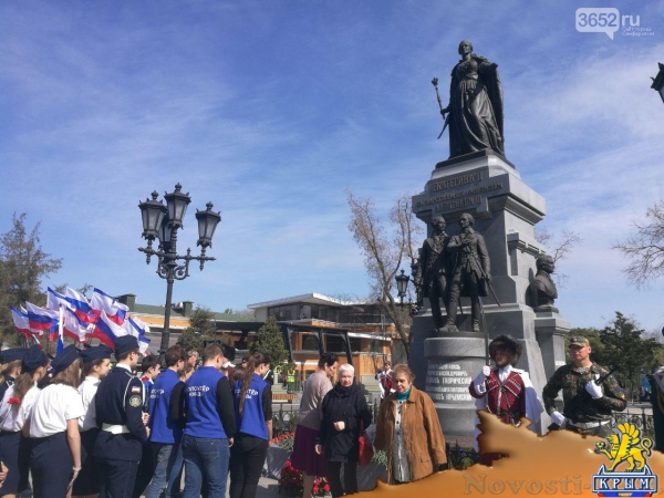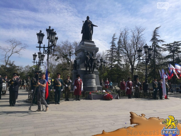 19 апреля в Симферополе отпраздновали День издания Манифеста Екатерины II о вхождении Крыма в состав России. Как сообщает корреспондент 3652.ru, представители администрации Симферополя вместе с общественниками и школьниками возложили цветы к памятнику Екатерины II. СПРАВКА: присоединение Крыма к Российской империи — одностороннее включение в 1783 году территории Крымского ханства в состав России в ходе военной кампании Потемкина по «усмирению Крыма» 1782—1783 годов, после отречения последнего крымского хана Шахина Гирея под давлением представителей Потемкина. На присоединённой территории в 1784 году была образована Таврическая область.