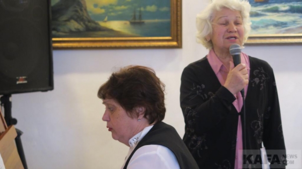 А литературно-музыкальный вечер продолжал идти своим ходом. Прочитать свои лирические поздравления, несмотря на ограниченное время, была предоставлена возможность практически всем желающим, что они с удовольствием и на радость публике делали. Музыкальные номера были представлены ансамблем школьниц под руководством Светланы Литвиновой, сольными исполнениями песен под аккомпанемент и акапельно, в том числе и на греческом языке. Все пришедшие на мероприятие с благодарностью принимали каждый выход на сцену, гости подпевали и аплодировали, поддерживая выступающих и поднимая настроение в атмосфере праздничного вечера.