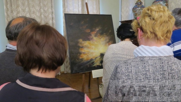 И любителей живописи в назначенное время собралось предостаточно! А сотрудники картинной галереи подготовили музыкальное открытие мероприятия и вступительное слово директора галереи Татьяны Гайдук. Далее зрители могли наслаждаться собственно «Закатом солнца во время всемирного потопа».