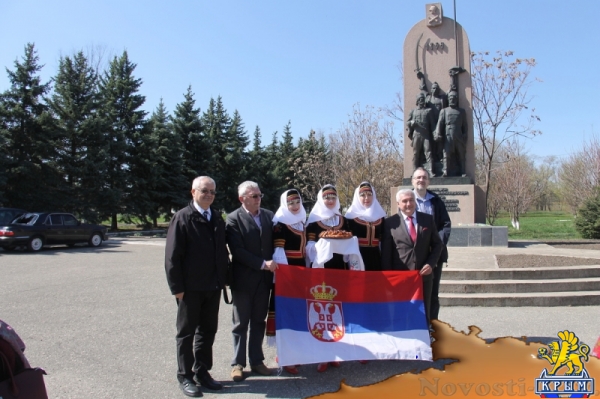 В Славяносербске у памятника "Братство" гостей встречали хлебом-солью девушки в сербских национальных костюмах. В рамках визита гости посетили районный краеведческий музей, где историк-краевед Александр Бельдюга провел экскурсию по сербскому залу и познакомил гостей с историей заселения Славяносербии.