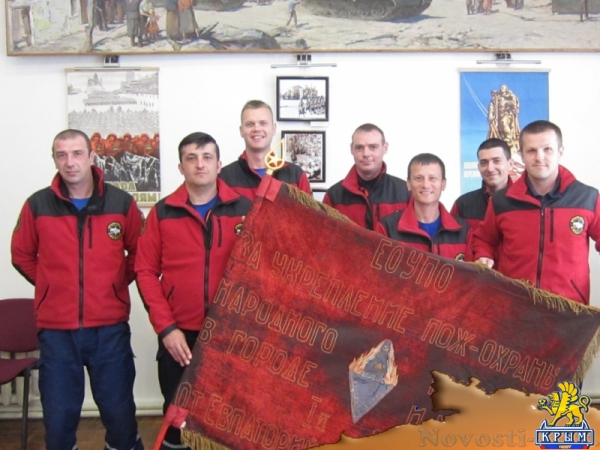 Как рассказали в отряде, в музее хранится уникальное Знамя Евпаторийской пожарной охраны со своей историей: «01.06.1932 г. горсовет наградил Почетным флагом Евпаторийской отдел Управления пожарной охраны "За укрепление пожарной охраны народного имущества в городе и на селе». Именно этот флаг в 1941 году из оккупируемого фашистами Крыма увезла в эвакуацию связист пожарной части Мария Тихоновна Чумак. Подвергая свою жизнь смертельной опасности, под видом беженца, обмотав вокруг своего тела. Только в 1944 г. флаг вернулся в город, и впоследствии передан в музей. Первая сессия городского Совета в освобожденном городе прошла под флагом пожарных, поскольку других знамён в городе просто не существовало, сказалась неразбериха при эвакуации–рассказал начальник Евпаторийского АСО Максим Расевич.