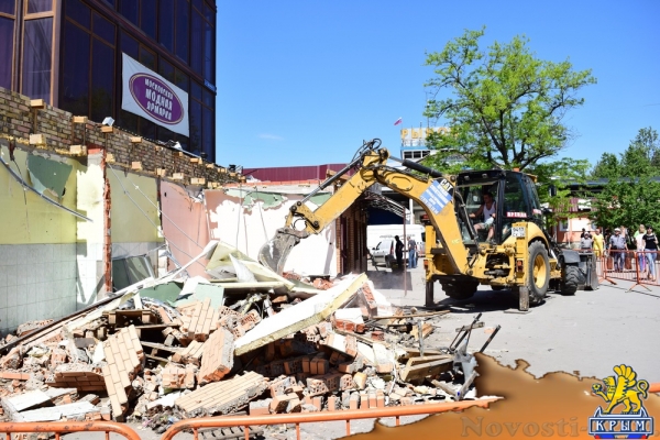 Сносят объекты, которые находятся в непосредственной близости от торгового центра "Куб". Сам ТЦ по-прежнему не работает. Ранее глава Крыма Сергей Аксенов сообщил, что "Куб" до июня будет закрыт по решения суда из-за несоблюдения в здании норм пожарной безопасности, а потом демонтирован.
