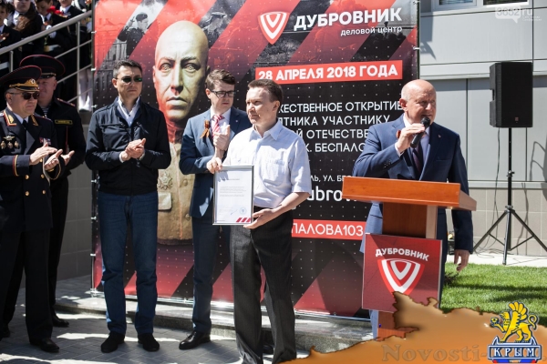 Прасковья 04-май, 02:01 193 Новости АРК / Симферополь28 апреля 2018 года в Симферополе состоялось важное событие не только для сотрудников Ассоциации предприятий комплексной безопасности «ДУБРОВНИК», но и всех жителей города – торжественное открытие памятника участнику Великой Отечественной войны, капитану милиции С.К. Беспалову, погибшему при исполнении служебных обязанностей в 1953 году. Мемориал установлен на территории многофункционального делового центра «Дубровник» по улице Беспалова, 103 на деньги, собранные сотрудниками Ассоциации «ДУБРОВНИК».
