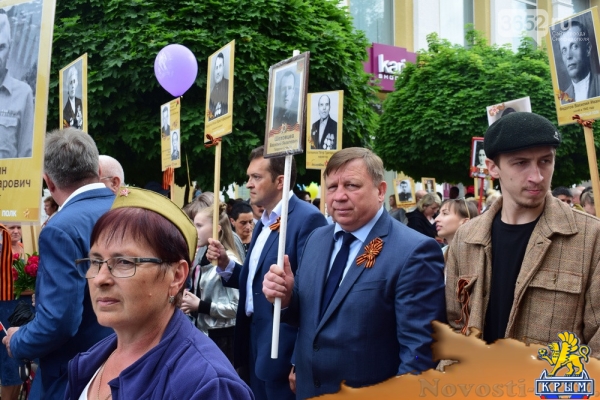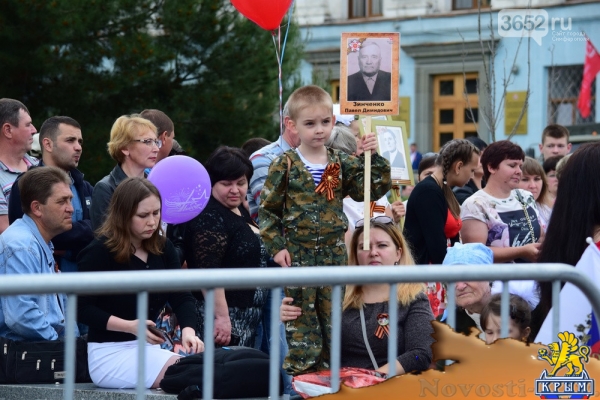 "Более 45 тысяч крымчан с портретами родственников, воевавших в годы Великой Отечественной войны, прошли от площади им. Ленина до парка им. Гагарина, где возложили цветы к мемориалу "Вечный огонь" на Могиле неизвестного солдата", - рассказали в администрации.