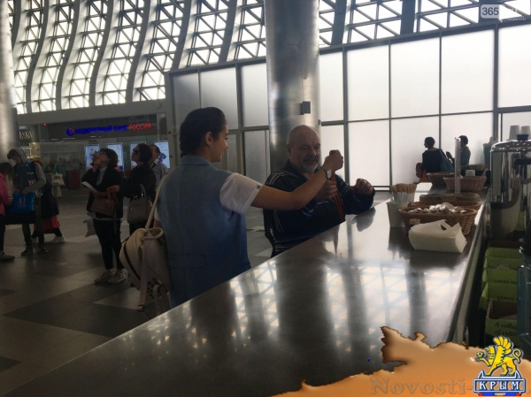 ✔ В аэропорту Симферополь раздают "Георгиевские ленточки" (ФОТО) - «Симферополь»