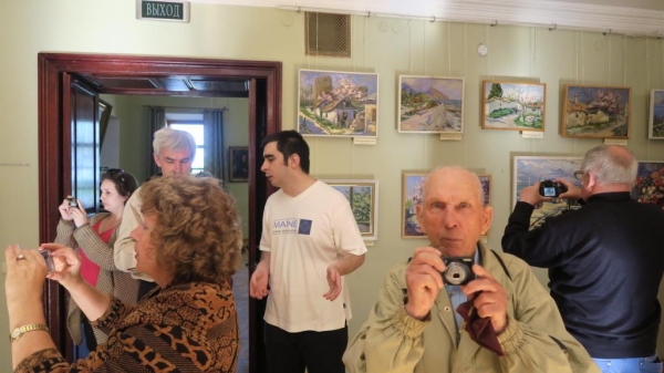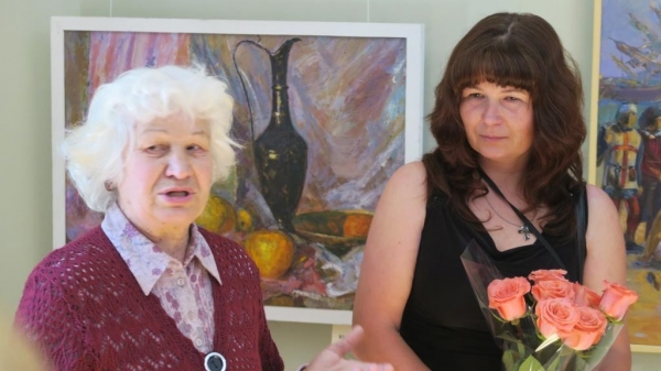 Далее действие перешло непосредственно к самой выставке. Сотрудники галереи представили известного феодосийского автора. Татьяна Солощенко - профессиональный художник, пятнадцать лет преподавала в местной детской художественной школе имени Айвазовского, а еще она известна как активный участник феодосийских и крымских выставок, в том числе персональных. Работы Солощенко находятся в музеях Феодосии и частных коллекциях внутри страны и за рубежом.