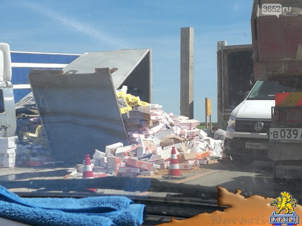 ✔ На крымской трассе перевернулся грузовик с печеньем (ФОТО) - «Симферополь»