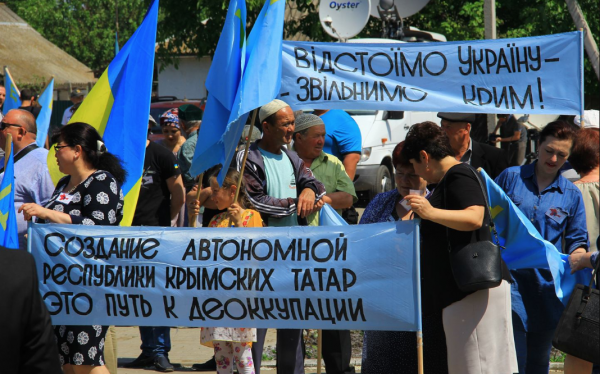 Траурный митинг ко Дню памяти жертв геноцида крымскотатарского народа в Геническе, 18 мая 2018 г Фото: investigator.org.ua