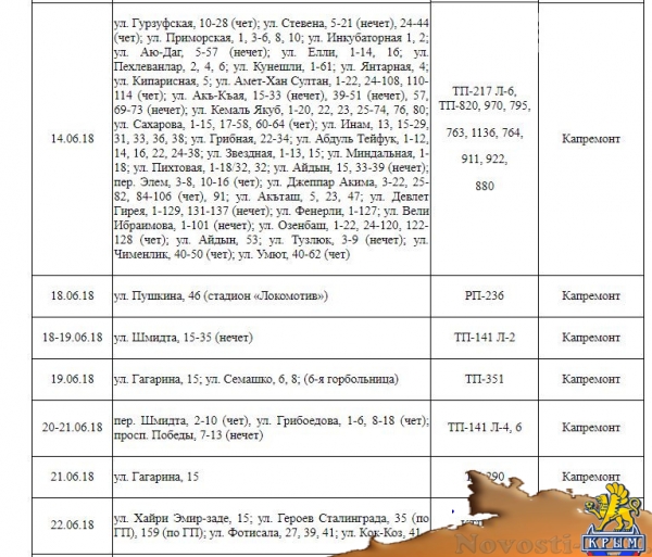 ✔ Стал известен график отключения света в Симферополе в июне - «Симферополь»