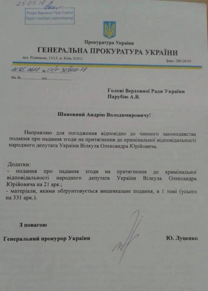 Изабелла 31-май, 16:24 193 Новости АРКГенеральный прокурор Украины Юрий Луценко внес в Верховную Раду представление о предоставлении согласия на привлечение к уголовной ответственности народного депутата от «Оппозиционного блока» Александра Вилкула.
