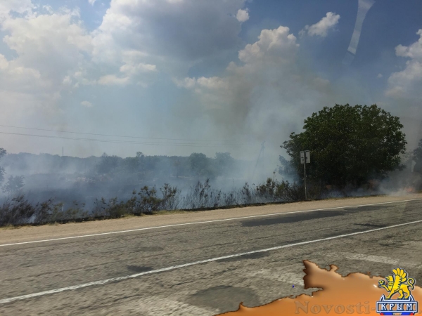 По словам автомобилистов, поля горят на подъезде к Сакам, дорогу периодически накрывает дымом. Информация о происшествии уже передана спасателям МЧС.