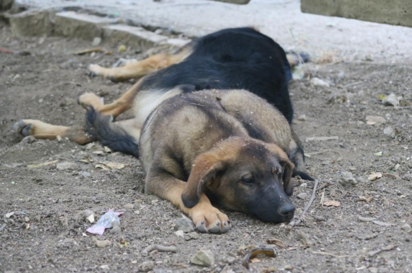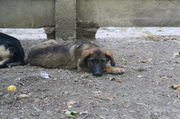 Сегодня «Кафа» вновь заглянула во двор и заметила, что детская площадка, на которой и дислоцировались щенки, пустует. Два подросших щенка лежат неподалеку, в теньке. Заглянув за забор, где они и появились на свет, остальных собак мы не обнаружили.