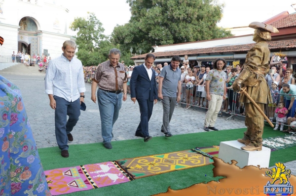 Вчера, 29 июня в Евпатории была открыта вторая очередь маршрута "Малый Иерусалим". Как сообщает корреспондент 3652.ru, на площади у Свято-Николаевского собора собрались зрители и участники экскурсии по улицам старого города. После торжественной церемонии открытия все желающие приняли участие в экскурсии и отправились по маршруту: мечеть Хан-Джами, улица Красноармейская, турецкие бани, синагога "Егия-Капай", караимские кенасы. На протяжении всего вечера на площади выступали лучшие творческие и национальные коллективы города, театр на ходулях и живые статуи. У каждого храма экскурсанты смогли ознакомиться с обычаями и традициями народов, населяющих Евпаторию.
