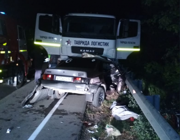 В оккупированном Крыму в Симферопольском районе в ночь на вторник, 3 июля, в результате столкновения легкового автомобиля ВАЗ-21099 с грузовиком «КамАЗ» три человека погибли, еще четверо получили травмы разной степени тяжести. Фото: Twitter МЧС Крым По информации пресс-службы «управления МВД по Республике Крым», ДТП произошло на трассе Симферополь – Николаевка в районе села Кольчугино, сообщает Центр журналистких расследований со ссылкой на издание «Крыминформ». «По предварительной информации водитель автомобиля «КамАЗ» выехал на полосу встречного движения, где допустил столкновение с автомобилем ВАЗ-21099. В результате лобового столкновения водитель и два пассажира автомобиля ВАЗ погибли на месте. Четверо пассажиров того же автомобиля получили повреждения различной степени тяжести», – говорится в сообщении. В ведомстве добавили, что ДТП произошло в 01:20. Сотрудники полиции устанавливают обстоятельства произошедшего. Фото: Twitter МЧС Крым Как сообщалось, 20 июня на этой же трассе в районе села Лекарственное в результате столкновения легкового автомобиля Toyota Corolla с грузовиком КамАЗ погибли пять человек.