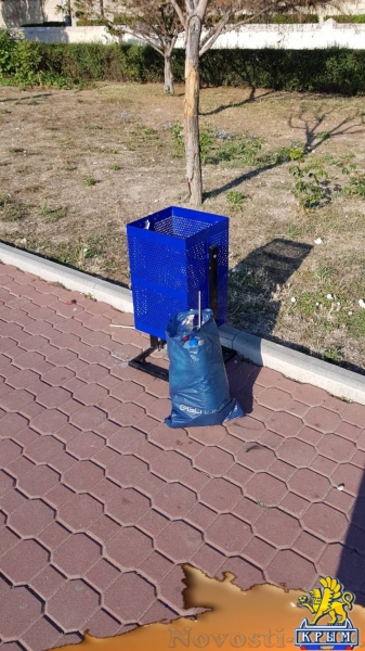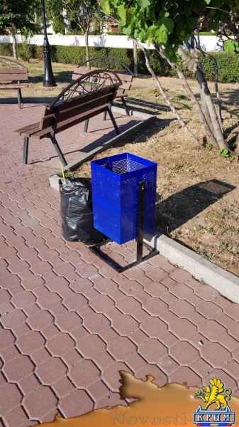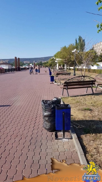 На центральной набережной Феодосии установили новые ярко-синие урны вместо старых зеленых!