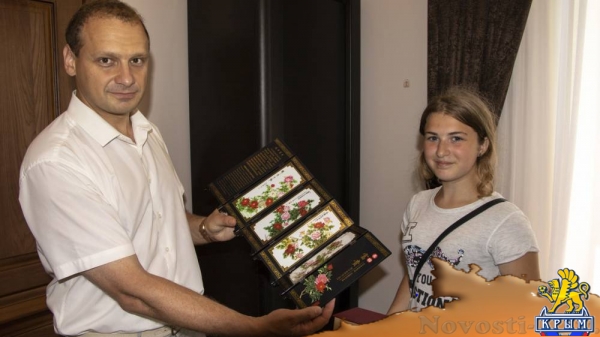 Администрацию посетила юная гостья Уленгия Дуброва. Уленгия представляла г.Ульяновск и г.Феодосию на Международном фестивале «Золой лотос», который проходил в Китае в г. Пекин, где победила в номинации «Народный вокал» и заняла третье место в номинации «Эстрадный вокал». Уленгия, вернувшись в Феодосию, привезла из Китая памятный сувенир в виде книги, который вручила сегодня Главе Администрации на добрую память. Сергей Викторович, пожелал юному дарованию удачи и успехов, а также дальнейших побед на подобных фестивалях.