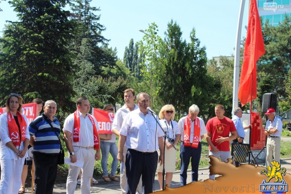 Митинг открыл член комитета Симферопольского городского отделения КПРФ Александр Чернышев, который призвал граждан сплотиться и решительно высказать своё недовольство действиям, направленных на повышение пенсионного возраста.