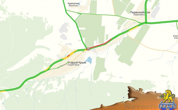 Авария произошла около полудня на выезде из Старого Крыма в сторону Феодосии, на повороте на Золотое поле. По словам очевидцев, грузовик врезался в автобус, который от удара выехал на обочину и повредил установленную у дороги стелу.