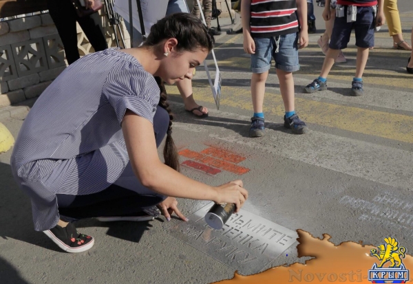 В центре Симферополя перед пешеходными переходами появились надписи с призывами соблюдать правила дорожного движения. Об этом корреспонденту 3652.ru сообщили в администрации крымской столицы. С помощью трафаретов на асфальт были нанесены надписи "Возьмите ребенка за руку", "Соблюдай ПДД", "Смотри по сторонам!", "Сними наушники", "Берегись автомобиля", "Не перебегай" и "Будь осторожен". Мероприятие провели сотрудники ГИБДД, представители общественных организаций и волонтеры.