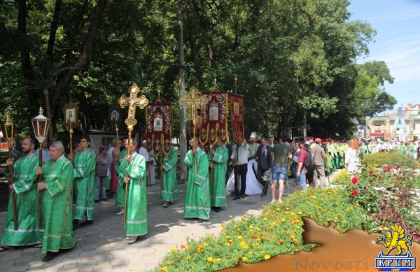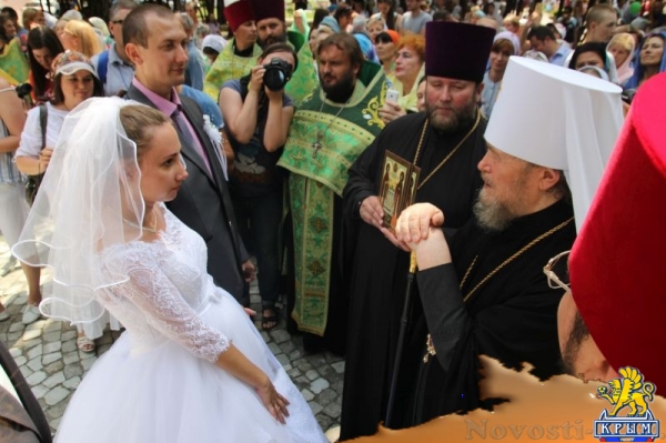 Начало праздника ознаменовал крестный ход верующих, приуроченный ко Дню семьи, любви и верности, после чего митрополит Лазарь провел церемонию освящения памятника и благословения крымчан на укрепление и создание новых семей.
