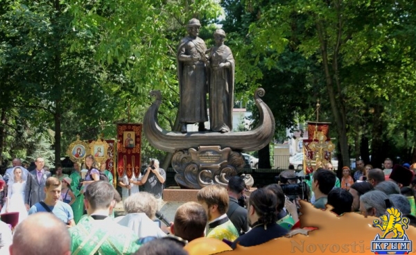 Памятник святым Петра и Февронии Муромских, ставших воплощением семейного счастья, открыт в Детском парке Симферополя. Бронзовая, без малого, пятиметровая композиция подарена городу меценатами. На открытии и освящении памятника побывал корреспондент «». Начало праздника ознаменовал крестный ход верующих, приуроченный ко Дню семьи, любви и верности, после чего митрополит Лазарь провел церемонию освящения памятника и благословения крымчан на укрепление и создание новых семей. Церемонию освящения памятника и благословения крымчан на укрепление и создание новых семей провел митрополит Симферопольский и Крымский Лазарь. «Я поздравляю всех с Днём семьи, любви и верности, - произнёс Владыка. - С днем памяти двух удивительных святых - благоверного князя Петра Муромского и его супруги княгини Февронии, являющимися покровителями христианского брака. В сегодняшний воскресный день с особой торжественностью и благоговением мы совершили семейный крестный ход, а также открыли и освятили памятник этим дивным угодникам божьим, небесным заступникам православных семей». В торжестве приняли участие глава администрации города Симферополя Игорь Лукашев, представители руководства г. Симферополя, , помощник главы администрации округа Муром Владимирской области Николай Войтенко, жители, гости крымской столицы, представители общественных организаций. Присутствующий на открытии памятника председатель Союза Ревнителей Памяти Императора Николая II Алексей Васильев, так прокомментировал это событие «Новороссу. info»: "Установка памятника православным святым - замечательная, но редкая практика для Крыма. К сожалению, зачастую, эти памятники стыдливо пытаются убрать с глаз долой. Как и этот монумент, который установлен в стороне от аллеи Детского парка. А на главной площади города, как и на площадях многих городов постсоветского пространства, стоит монумент разрушителя государства и семьи, строителя новой, кровавой жизни. Не надоело ли нам всем жить по принципам двойной морали?" Фото «»