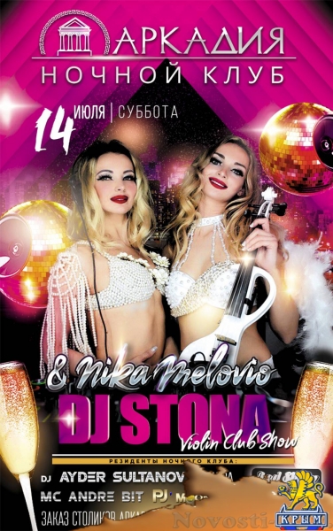 НК Аркадия. 14 июля, суббота гость ночи DJ Stona & Nika Melovio