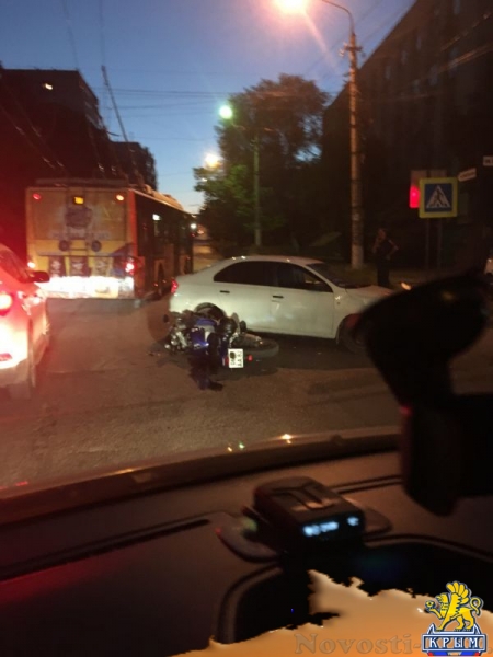 Авария произошла около 21:00 на перекрестке улиц Кечкеметская и Арабатская, возле здания Крымского главка МЧС. Столкнулись автомобиль "Skoda Rapid" и мотоцикл "Yamaha".