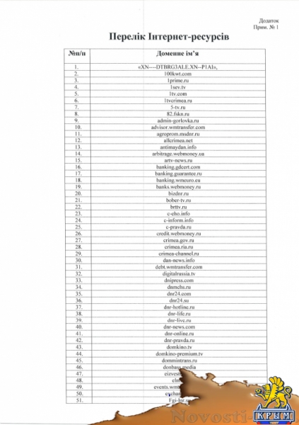 ✔ СБУ потребовала заблокировать еще 180 российских и антифашистских сайтов (ФОТО ДОКУМЕНТА) - «Политика Крыма»