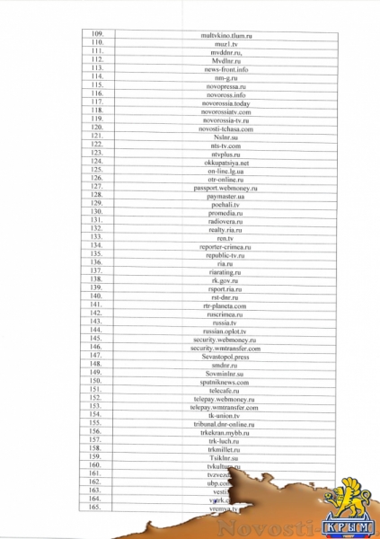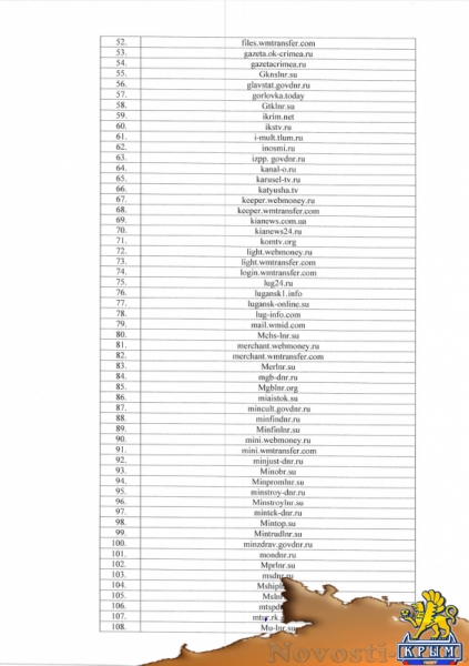 Также опубликованы полный список, запрещенный сайтов, и пример письма, которое силовики рассылают провайдерам. Об этом сообщает издание UBR.ua.