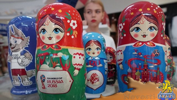 Лидируют товары с символикой ЧМ-2018, а также традиционные матрешки, шапки-ушанки, сувениры с изображением Кремля, собора Василия Блаженного и других символов России, включая портреты Владимира Путина.