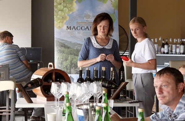 В 14 часов началась пресс-конференция для представителей СМИ. Здесь же можно было продегустировать продукцию завода шампанских вин «Новый свет» - российское шампанское коллекционное белое брют. Линейка сладости шампанских «Нового света»: кюве 2 г/дм3, экстра брют от 3 до 6 г/дм3, брют 10 г/дм3, сухое 20 г/дм3, полусухое 35 г/дм3 и полусладкое 50 г/дм3. В 2016 году вышли четыре новые марки премиум класса – моносортовые вина. Это Рислинг кюве, Шардоне кюве, Пино Гри экстра брют и сухое белое «Золотой рислинг Крыма». После воссоединения с Россией Пино Гри выставили на конкурс под патронатом Международной организации виноделия и виноградорства в Болгарии и получили высшую награду – золото, Гран При вообще не было. В 2016 году все эти четыре марки были выставлены на конкурс в Абрау-Дюрсо и получили Гран При, два золота и бронзу. Из одного сорта винограда намного сложнее создавать шампанское, и оно намного дороже стоит.